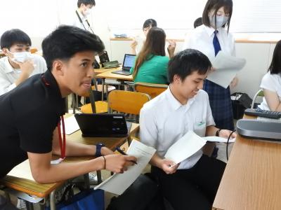 6月12日(月)7限、3年4組のRS探究Ⅱの授業で、サイエンスディベートが行われました。愛媛大学留学生が9名来校し、生徒と共にディベートの流れに沿って、賛成派と反対派の2教室に分かれて議論を行いました。来週も実施予定ですので、愛媛大学留学生との関わりを通して、科学的論題について深く思考し、根拠を持って英語で述べていけるよう頑張ってほしいと思います。