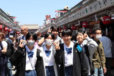 2023年5月10日 11時08分生徒たちは自分たちで決めた旅程をしっかりこなしています。浅草寺で遭遇した皆さんです。この後も頑張ってください。